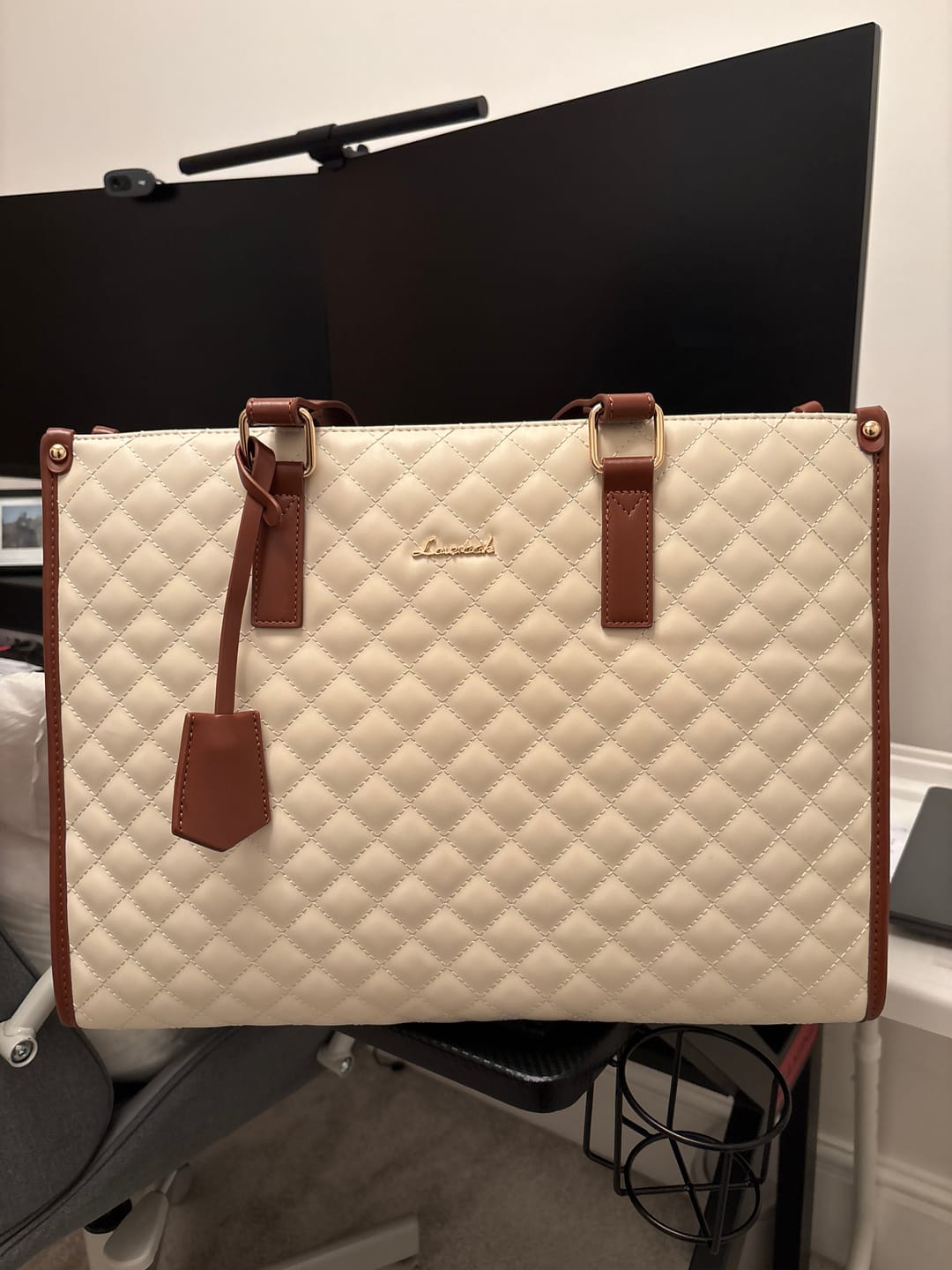 Sieht aus wie eine Designertasche, mega hochwertig. Die Fächer sind super durchdacht und nichts fliegt mehr durcheinander.